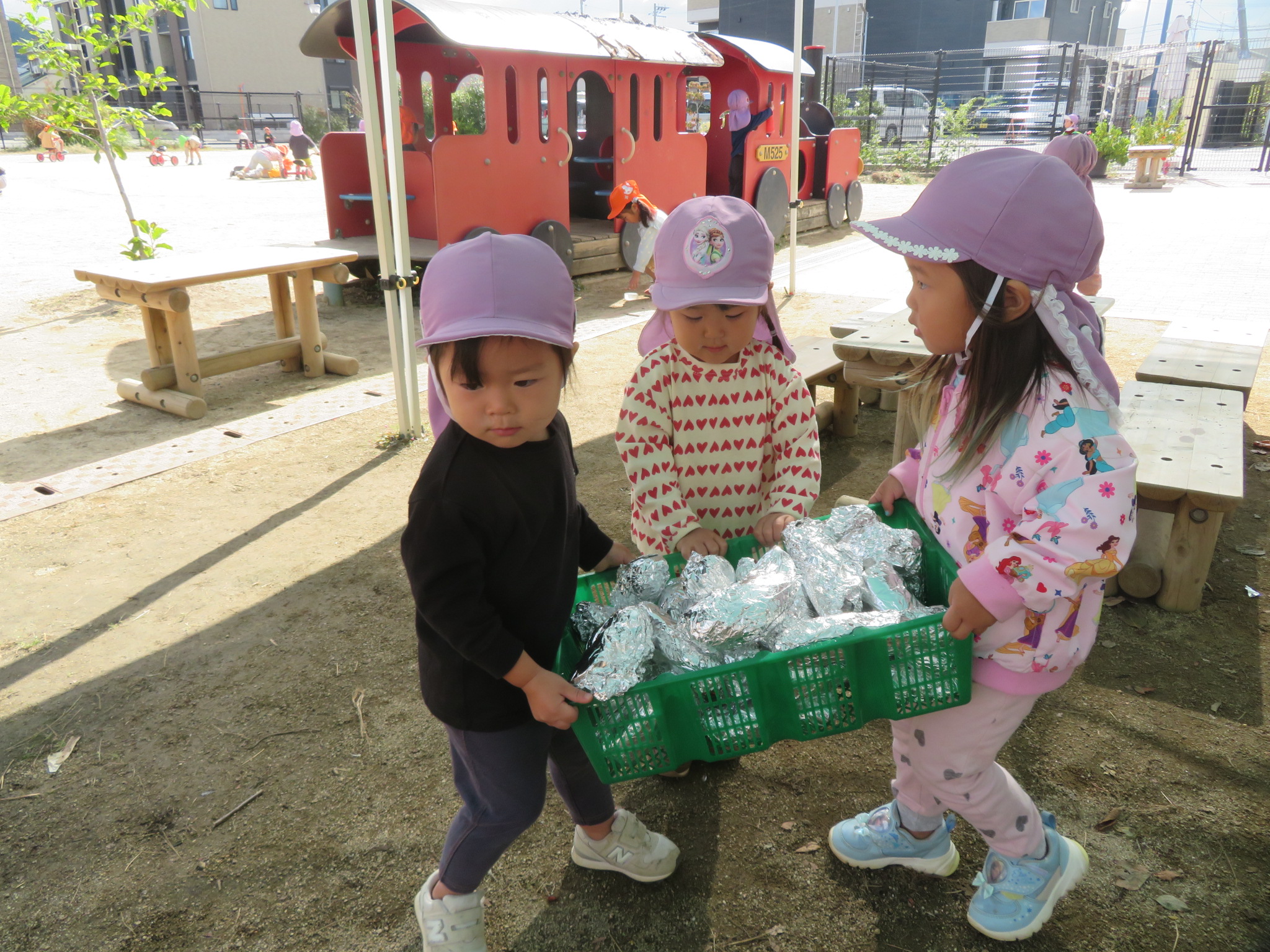 • 焼き芋の下ごしらえ完了!よいしょよいしょ!